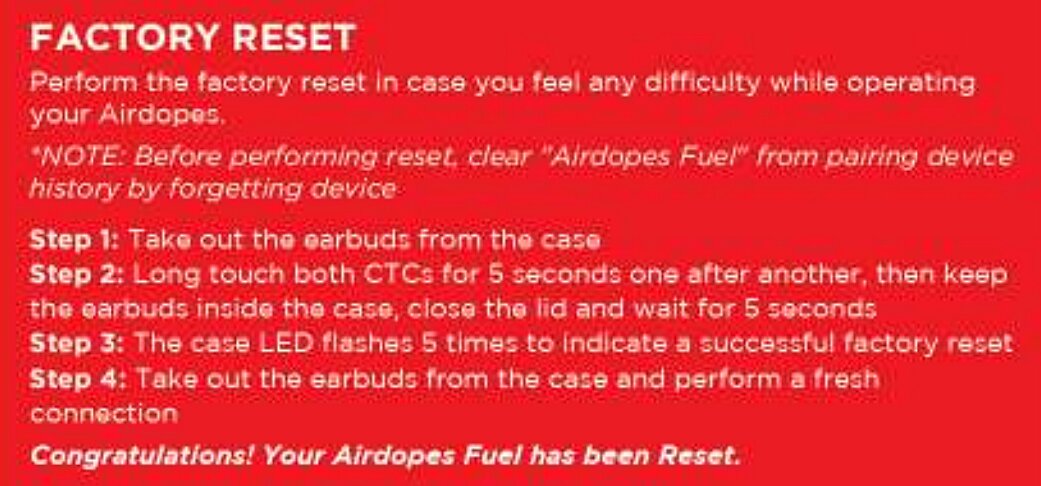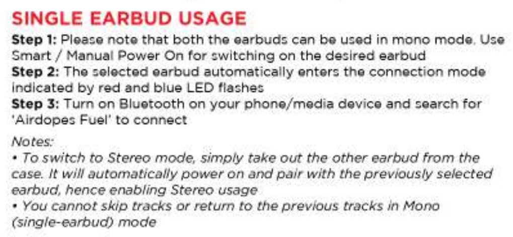 Home Audiophile Earbuds Manuals The boAt Airdopes Fuel earbuds come with specs such as up to 50 hours of total battery life using the charging case, ENx and Beast mode technology for Environment Noise Cancellation and Low Latency support, Bluetooth 5.3 and a working range of 10 meters, a charging time of only 40 minutes, the IPX4 dust and sweat-proof certification, and much more. Learn how to use these earbuds using this boAt Airdopes Fuel manual! If you are interested in purchasing these earbuds, you can easily do it using the boAt official website. Also, in case you are interested in giving the original manual a look, you can do it here. What's Inside ToggleboAt Airdopes Fuel Specs SheetboAt Airdopes Fuel AccessoriesboAt Airdopes Fuel Manual | Everything You Must Know!How To Control These Earbuds?How To Reset And Re-Pair These Earbuds?How To Wear These Earbuds?How To Turn On And Off?How To Pair The Earbuds? – Dual ModeHow To Pair The Earbuds? – Single ModeHow To Charge The Earbuds?What Do The Lights Mean?Do These Earbuds Have An App?Some Common Problems & TroubleshootingFAQs boAt Airdopes Fuel Specs Sheet ModelboAt Airdopes FuelWeightEarbuds and charging case: Around 45 gramsWaterproof/IP ratings IPX4Bluetooth version V5.3Range/Distance10 metersConnectivity Port/Charging CableType-CDriver 10mmSpeaker frequency response20Hz – 20kHzBattery Life Earbuds: Around 8 hours Charging case: About 42 hoursCharging Time Earbuds: Around 40 minutes Charging case: About 1.5 hoursApp Support NoControls/Features Play and pause a song, play the next and previous song, answer, end, and reject a call, Beast mode (low latency)Accessories Charging case, USB cable, user manual, warranty card, catalogue, FAQ card, sticker, ear tipsPriceAround 60 USD boAt Airdopes Fuel Accessories The earbuds come with the following accessories: Charging case. USB cable. User manual. Warranty card. Catalogue. FAQ card. Sticker. Ear tips. Credits: Mr LazyTech Credits: Mr LazyTech Credits: Mr LazyTech Credits: Mr LazyTech boAt Airdopes Fuel Manual | Everything You Must Know! How To Control These Earbuds? NOTE: The capacitive touch control is placed on the top part of the body of the earbuds. Play or pause a song: Press the capacitive touch control on any of the earbuds one time. Play the next song: While listening to music, press the capacitive touch control on the right earbud two times. Play the previous song: While listening to music, press the capacitive touch control on the left earbud two times. Answer an incoming call: Press the capacitive touch control on any of the earbuds one time. End a current call: Press the capacitive touch control on any of the earbuds two times. Reject an incoming call: Press and hold the capacitive touch control on any of the earbuds for about 2 seconds. Activate the voice assistant: Press and hold the capacitive touch control on the left earbud for about 3 seconds. Activate the Beast mode (low latency): Press and hold the capacitive touch control on the right earbud for about 3 seconds. Volume cannot be controlled via earbuds and can only be adjusted using the connected phone/media device. How To Reset And Re-Pair These Earbuds? NOTE: To ensure a good result, make sure that the earbuds are fully charged. Step 1: Go to the device’s settings. Step 2: Delete the Airdopes Fuel earbuds from the devices’ Bluetooth list. Step 3: Turn off Bluetooth on the device. Step 4: Take the earbuds out of the charging case. Step 5: Press and hold the capacitive touch control on both earbuds for about 5 seconds. This will reset the earbuds. Step 6: Place the earbuds into the charging case and close its lid. Wait for at least 5 seconds. A light will flash 5 times on the case, indicating a successful factory reset. Step 7: Turn on Bluetooth on the device. Step 8: Search for a new device. Step 9: Open the lid of the charging case. After that, the earbuds will turn on automatically and pair with each other. A red and blue light will start flashing on the primary earbud and a blue light will flash once every 5 seconds on the secondary one, meaning that they will be ready to pair with any device. Step 10: Select the Airdopes Fuel earbuds. If a password is needed, type “0000” or “1234”. After that, the pairing will be done. How To Wear These Earbuds? Step 1: Take both earbuds out of the charging case. Step 2: Identify the left and right earbuds. Step 3: Choose the ear tips that best suit your ears. Step 4: Insert the headphones into the inner canal of the ears. Step 5: Rotate for the best possible comfort and best fit, and make sure that the microphone is pointing to the mouth. How To Turn On And Off? Turn On Automatically: Open the lid of the charging case. After that, the earbuds will turn on automatically. Manually: Press the capacitive touch control on both earbuds for 3 seconds. After that, the earbuds will turn on. Turn Off Automatically: Place the earbuds into the charging case. After that, the earbuds will turn off automatically. Manually: Press the capacitive touch control on both earbuds for 5 seconds. After that, the earbuds will turn off. How To Pair The Earbuds? – Dual Mode To Android And iOS Devices Step 1: Open the lid of the charging case. After that, the earbuds will turn on automatically and pair with each other. A red and blue light will start flashing on the primary earbud and a blue light will flash once every 5 seconds on the secondary one, meaning that they will be ready to pair with any device. Step 2: Unlock the desired device. Step 3: Go to the device’s settings. Step 4: Turn on Bluetooth on the desired device. Step 5: Search for a new device. Step 6: Select the Airdopes Fuel earbuds. If a password is needed, type “0000” or “1234”. After that, the pairing will be done. To Windows (PC) Step 1: Turn on the Window’s Bluetooth. Step 2: Go to the settings. Step 3: Go to “Bluetooth and other devices”. Step 4: Click on “Add device”. Step 5: Click on Bluetooth. St