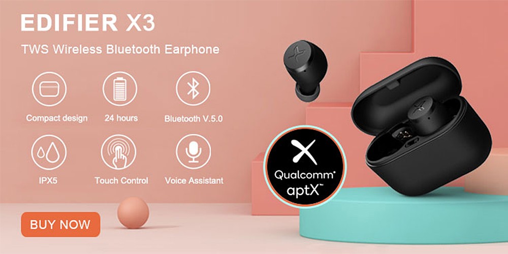 Home Deals Recently, Edifier appeared in Aliexpress Featured Brand. Various Edifier earphones are being offered at a discounted price, and some have the lowest price of all time. Among them is the Edifier X3 TWS earphones, Aliexpress most selling TWS earphones, has also hit the lowest price of all time which is only $20.99. You can buy Edifier X3 for the lowest price right now and tomorrow sharp at 5:00 am UTC the sale will end. Here’s the link to the store and the promotion page: [su_note note_color=”#c3bcff”]Tip: You can also get a store coupon of $1 which applicable on purchases above $19. This way you can Buy Edifier X3 for the price of $19.99 instead of 20.99.[/su_note] [su_button url=”https://s.click.aliexpress.com/e/_dUybd3u” target=”blank” style=”soft” size=”8″ wide=”yes” center=”yes” icon=”icon: opencart” desc=”Best Deals Via The Phone Talks” rel=”nofollow”]Buy Edifier X3 From Aliexpress for $20.99[/su_button] [su_button url=”https://ali.ski/EO3d6U” target=”blank” style=”soft” size=”8″ wide=”yes” center=”yes” icon=”icon: opencart” desc=”Best Deals Via The Phone Talks” rel=”nofollow”]Edifier Brand Promotion Page Aliexpress[/su_button] Edifier X3 TWS Earphones – The Cheapest Qualcomm AptX Earphones Edifier X3 are complete in-ear earbuds with the plastic build and matte black color which features the True Wireless Stereo Technology. These are also IPX5 certified which means that they can be used during rainy sessions and are also sweatproof. For a premium experience, they provide a touch operation system instead of the traditional buttons. In terms of hardware, Edifier X3 integrates a Qualcomm audio chip which enables AptX audio decoding. In fact, these earbuds are the only earbuds available under $25 which offer AptX audio decoding. Moreover, the Bluetooth module is also v5.0 and the connectivity range is around 10 meters. [su_highlight background=”#fff371″]This earbud is recommended for gaming[/su_highlight]because it has a Qualcomm chip and Bluetooth 5.0 which offers low latency without the need of gaming mode. Edifier X3 can be used as both mono and stereo speakers since each has a separate microphone with CVC 8.0 to decrease background noise while calling. As far as the sound quality is considered, it’s the [su_highlight background=”#fff371″]best one under this price tag beating QCY T5, Redmi Airdots, and other contenders[/su_highlight]. The credit goes to the 13nm dynamic driver which is the largest we have seen in a TWS earphone along with 16bit/44.1kHz audio frequency and AptX decoding rate up to 352kbps, with CD quality sound. In comparison to QCY T5, it has a much-controlled bass, slightly better details, and clarity, and most importantly better audio latency without going into gaming mode. Coming to the battery part, the earbuds has an extended playback time of 24 hours from the 500mAh case battery. A single charge can give you 4 to 5 hours of continous playback. Edifier X3 TWS Earphones Manual – How to Operate? Edifier X3 can be operated via the following commands: A quick touch – Play pause or play music /answer or hang up the call Double touch on left earbud – Previous song Double touch on right earbud – Next song Triple touch – Call for Siri/Google assistant Long touch for 2 seconds – Reject call/ disconnect the current A2DP connection Long touch for 5 seconds – Switch on/off Edifier X3 vs QCY T5 Edifier X3 is better than QCY T5 in these aspects: Latency Sound Quality AptX decoding Microphone Durability Range Battery life QCY T5 is better than Edifier X3 in these aspects: Design Comfort Price Better master control (mono) usage You can also read the QCY T5 earbuds review to know better about these earphones. You can buy Edifier X3 earbuds from clicking on the buttons below: [su_button url=”https://s.click.aliexpress.com/e/_dUybd3u” target=”blank” style=”soft” size=”8″ wide=”yes” center=”yes” icon=”icon: opencart” desc=”Best Deals Via The Phone Talks” rel=”nofollow”]Buy Edifier X3 From Aliexpress for $20.99[/su_button] [su_button url=”https://ali.ski/EO3d6U” target=”blank” style=”soft” size=”8″ wide=”yes” center=”yes” icon=”icon: opencart” desc=”Best Deals Via The Phone Talks” rel=”nofollow”]Edifier Brand Promotion Page Aliexpress[/su_button] Other Edifier products on incredible prices: Edifier TWS NB2 (New Arrival) for 74.99 USD (AptX, ambient sound mode) Edifier TWS 200 for 31.57 USD (13nm driver, AptX, LDS antenna) Edifier TWS 1 for 30.59 USD (Qualcomm QCC3020 chip, Auto pair) Edifier TWS 6 for 74.09 USD (Hi-Res Audio, Knowles Balanced Armature, AptX)