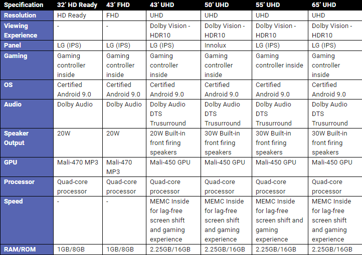 Home Latest News Motorola and Flipkart strategic partner, today launched its first range of Motorola Android 9.0 TVs in the Indian market. Motorola Smart TVs comes with a wireless AndroidTV Gamepad for a fantastic gaming experience. What's Inside ToggleSpecifications Of Motorola Smart TVMain Highlights:Price and AvailabilityAlso Read: Google Pixel 4 XL Hands-On Images Leaked – Equipped with 90Hz screen Specifications Of Motorola Smart TV The 4K range of Motorola Smart TVs are powered by cutting-edge Dolby vision with HDR10, which allows for best- in-class brightness, in addition to 1.07 billion colors and an IPS panel. The smart TV also comes with revolutionary MEMC technology that enables seamless fluid, frame-to-frame motion and exceptional screen refresh rates, ideal for fast-paced gaming and high-octane action movies. They also come with a wireless AndroidTV Gamepad for a fantastic gaming experience. With Motorola’s AmphiSoundX, the in-built superior 30W speaker with DTS TruSurround Sound enables dialogue enhancement and provides astoundingly immersive surround sound. Consumers can also explore new entertainment opportunities and experience all-round ease with Google Assistant, Chromecast, and official Google Android Pie V9.0. Motorola TVs comes with BlazeX performance powered by unparalleled superior specs such as 2.25GB RAM, 16GB ROM, next-gen fastest Triple core Mali GPU with Quad-Core Processor. Main Highlights: autotuneX (Dolby Vision + HDR10 Display Technology). blazeX Performance. (16GB ROM + 2.5GB RAM). amphisoundX (DTS Surround 30w Speakers). Price and Availability The Motorola Smart TVs marks the smartphone brand’s entry into the consumer durables space and will be available in 7 variants in HD ready, Full HD, and Ultra HD (4K) starting at INR 13,999 from 29 September 2019. Also, we invite you to follow us through our social networks to receive much more information. We are on Facebook, Instagram, Twitter and now we are launching our Youtube Channel. Do not forget to share and tell us your impressions! Also Read: Google Pixel 4 XL Hands-On Images Leaked – Equipped with 90Hz screen