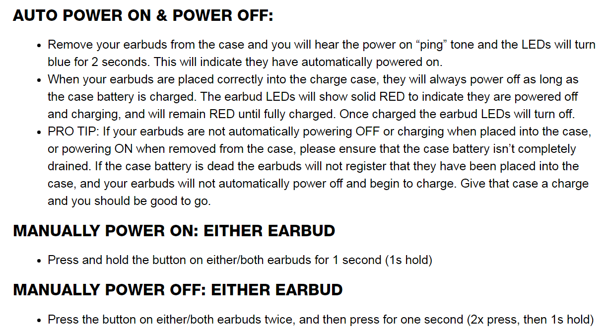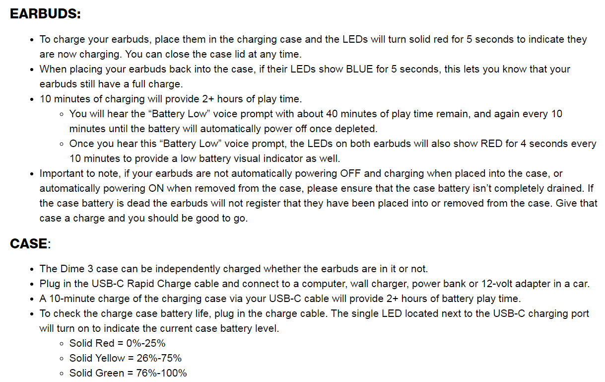 • Said red light turns off while on the charging case: The earbuds are fully charged.