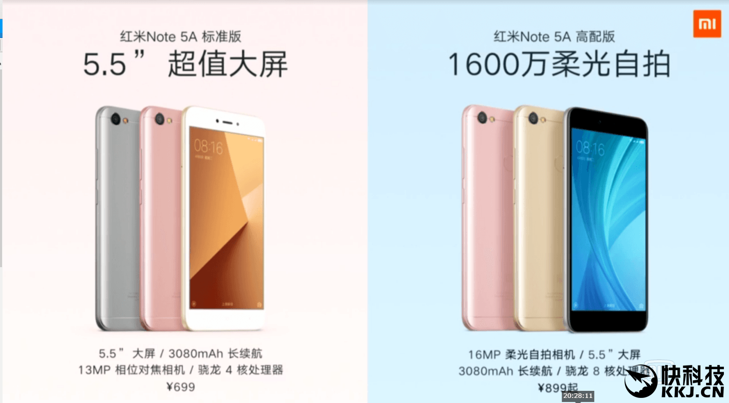 Home Latest News At last the anticipation is over, Xiaomi released Xiaomi Redmi Note 5A, today. We have two versions, starting with a price of 899 Yuan. It’s a budget-friendly flagship, and the front camera is the highlight of the flagship. More of the leaks turn out to be true. Let’s get into the details to know the flagship better: What's Inside ToggleXiaomi Redmi Note 5A – Innovation Under Great PriceXiaomi Redmi Note 5A – Price & AvailabilityThe Selling PointsThe Down PointsOur Verdict Xiaomi Redmi Note 5A – Innovation Under Great Price The phone is ready to compete with similar flagships such as OPPO R9 and Vivo X7. The Note 5A features the same three-staged metal design in the Redmi series and the symmetrical border layout at the rear matches these flagships. Concerning the physical dimensions, the phone occupies a 153 x 76.2 x 7.7mm and weight 153g. Moreover, the 2.5D glass on the front further enhances the beauty of the flagship. The phone comes in three variants: Champagne gold, Rose gold and Platinum silver. Coming to the configuration, Xiaomi Redmi Note 5A integrates a 5.5-inch 720p display. The heart of the flagship is Qualcomm’s latest low-end Snapdragon 435 SoC in higher version and Snapdragon 625 in lower version. It’s further accompanied by a built-in 3/4GB memory and 32/64GB ROM. Luckily, the flagship already runs on MIUI 9 and a 3080mAh battery power it. There are two highlights of the flagship. First is the front 16MP camera featuring 36 levels of beauty in the beauty mode and the front LED flash, only in the higher edition. Sadly, the standard one has a common 5MP front camera. Meanwhile, the rear camera is 13MP. Last but not least is the three slot design (support 2 SIM cards + one TF card up to 128GB). Getting in details, the front LED flash of Xiaomi Redmi Note 5A has a self-timer. When it detects the face, it stimulates the effect of natural light shooting, brightens the skin tone and eye light reflection. Xiaomi Redmi Note 5A – Price & Availability The Redmi Note 5A has the following price tag: Standard Version (SD 425+3GB+32GB+5MP Front Camera) for 899 Yuan ($135) Higher Version (SD 435+4GB+64GB+16MP Front Camera) for 1199 Yuan ($180) The phone will start selling on August 22 at 10:00 (Beijing Time) in Jingdong Mall and Xiaomi Official Store. We will provide you the links to the international Chinese stores for global purchasing when the phone becomes available. The Selling Points Front 16MP camera with LED flash Three-Stayed Metal Chassis with 2.5D Glass 3 Slots Design Budget-friendly price The Down Points 720p screen Low-End Flagship in a Mid-End Category Standard Version has an SD 425 and 5MP front camera Our Verdict Looking at the release of the flagship, we can say that Xiaomi has done some great innovation. However, these innovations will attract the selfie lovers especially the female users out there. Xiaomi could have named it Redmi 5A instead of Redmi Note 5A. The Redmi Note family consist of only mid-enders. However, this is a low-end flagship. Xiaomi even continues to use the old Snapdragon 425 in the standard version and the new Snapdragon 435 in the higher version. The variants are not same at all. The standard one is way thicker and features a common 5MP front camera. Meanwhile, the higher enjoys all the benefits with the 16MP front camera. Truly, the variants difference is too much which is not a good marketing strategy. Source